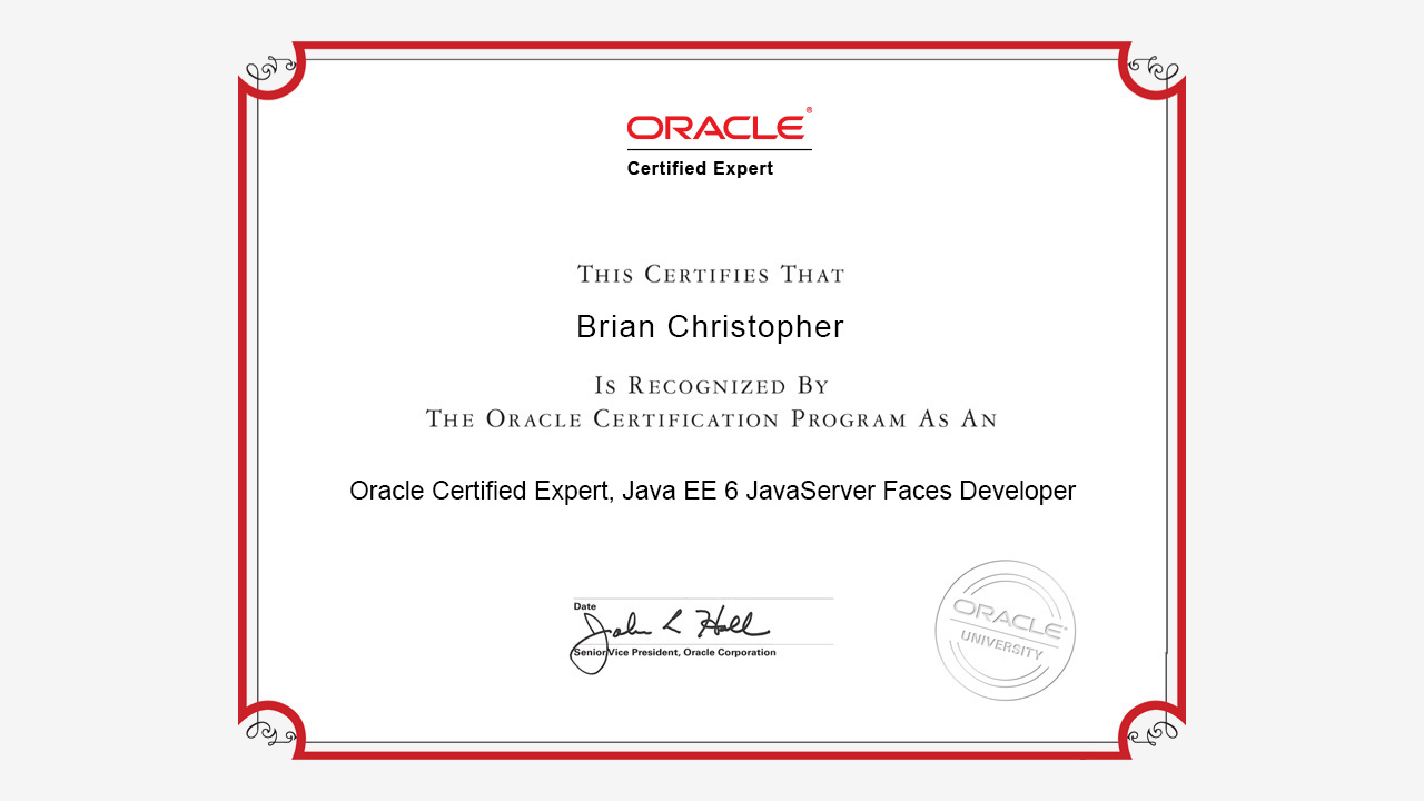 Passing this exam is on of the requirement to earn Oracle Certified Expert, Java EE 6 JavaServer Faces Developer. This assignment has been validated EE 6.