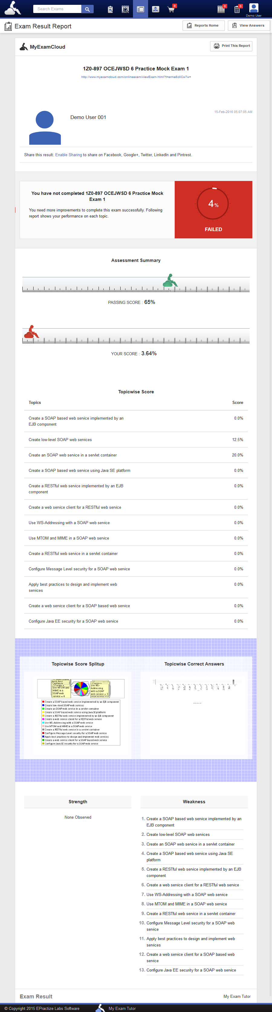 MyExamCloud - Exam Result Report