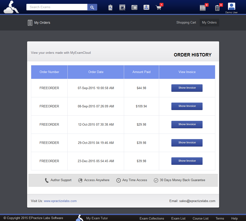 MyExamCloud - My Order History