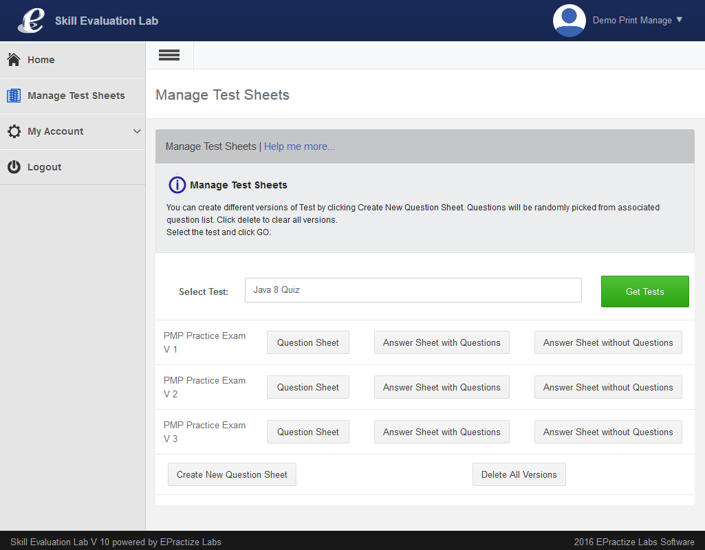 Print Manager - Manage Test Sheet